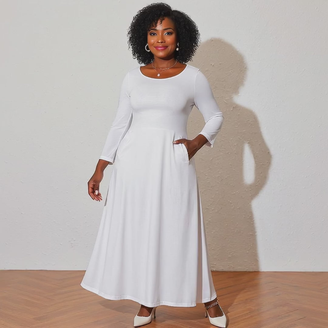 OES White Ceremonial Dress w/Pockets - OES Sister Apparel | Eastern Star Dress Plus Sizes